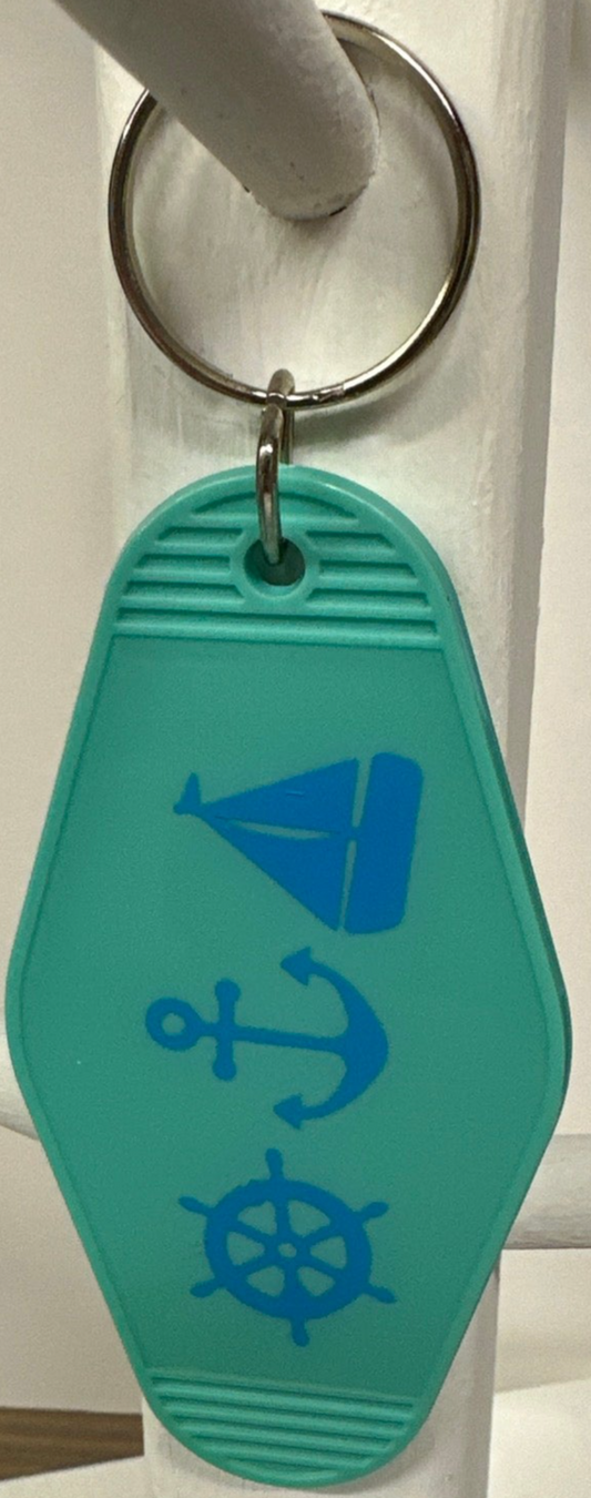 Vintage Inspired Motel Keychain BOAT LIFE Blue/Teal Double Sided